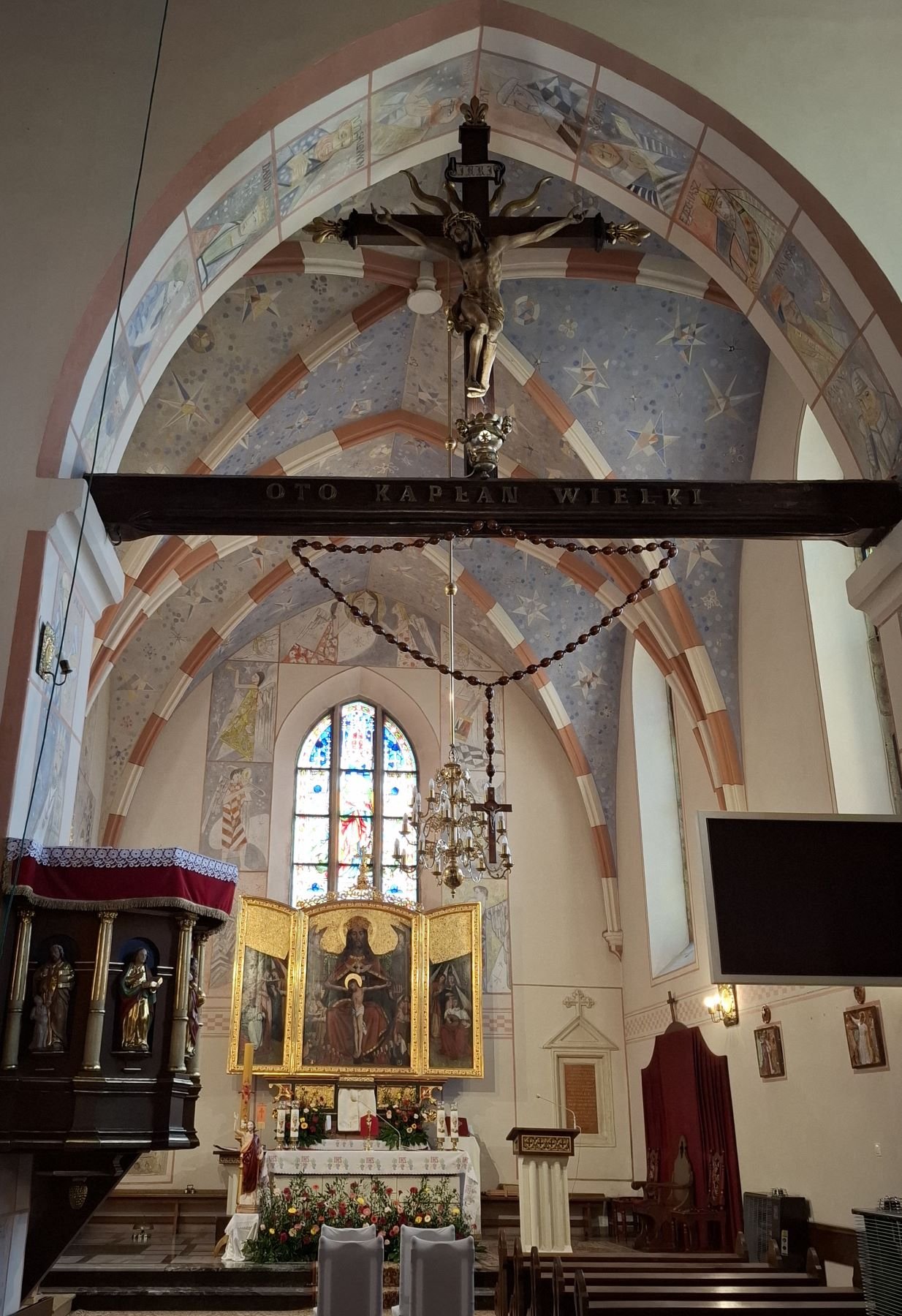 Zwiedzenie zamku w Dębie było w planach od lat. Zawsze się nie udawało i tradycji stało się zadość bo zamek został zamknięty na 3 letni remont. Pozostało podziwianie z różnych miejsc ze spaceru po grobli. Odwiedziliśmy miejscowy cmentarz z niecodzienną neogotycką kaplicą grobową rodziny Jastrzębskich, ostatnich właścicieli zamku w Dębnie. Kaplicę, oraz kościół w Porąbce Uszewskiej projektował jeden z najwybitniejszych polskich architektów przełomu XIX I XX wieku - Jan Sas-Zubrzycki, którego najwybitniejszym dziełem jest kościół św. Józefa przy Rynku Podgórskim. Odwiedziliśmy też cmentarz z I WŚ nr 281. Następnie zwiedziliśmy Dębieński kościół św. Małgorzaty. Świetnym przewodnikiem okazał się proboszcz. Kościół ma dwa niecodzienne zabytki - chrzcielnicę i freski w stylu kubistycznym z roku 1957 autorstwa Józefa Dutkiewicza, krakowskiego artysty i konserwatora zabytków. Kolej na Porąbkę Uszewską. Oprócz obejrzenia kościoła z zewnątrz i przez szybę zamkniętych drzwi obejrzeliśmy grotę nawiązującą do Lourdes. I w końcu trekking na Bocheniec. Brak znakowania szlaków, które jedynie dobrze prezentują się na mapach. Następnie zwiedzanie Bocheńskiej Kopalni i ekspresowy spacer po centrum Bochni.