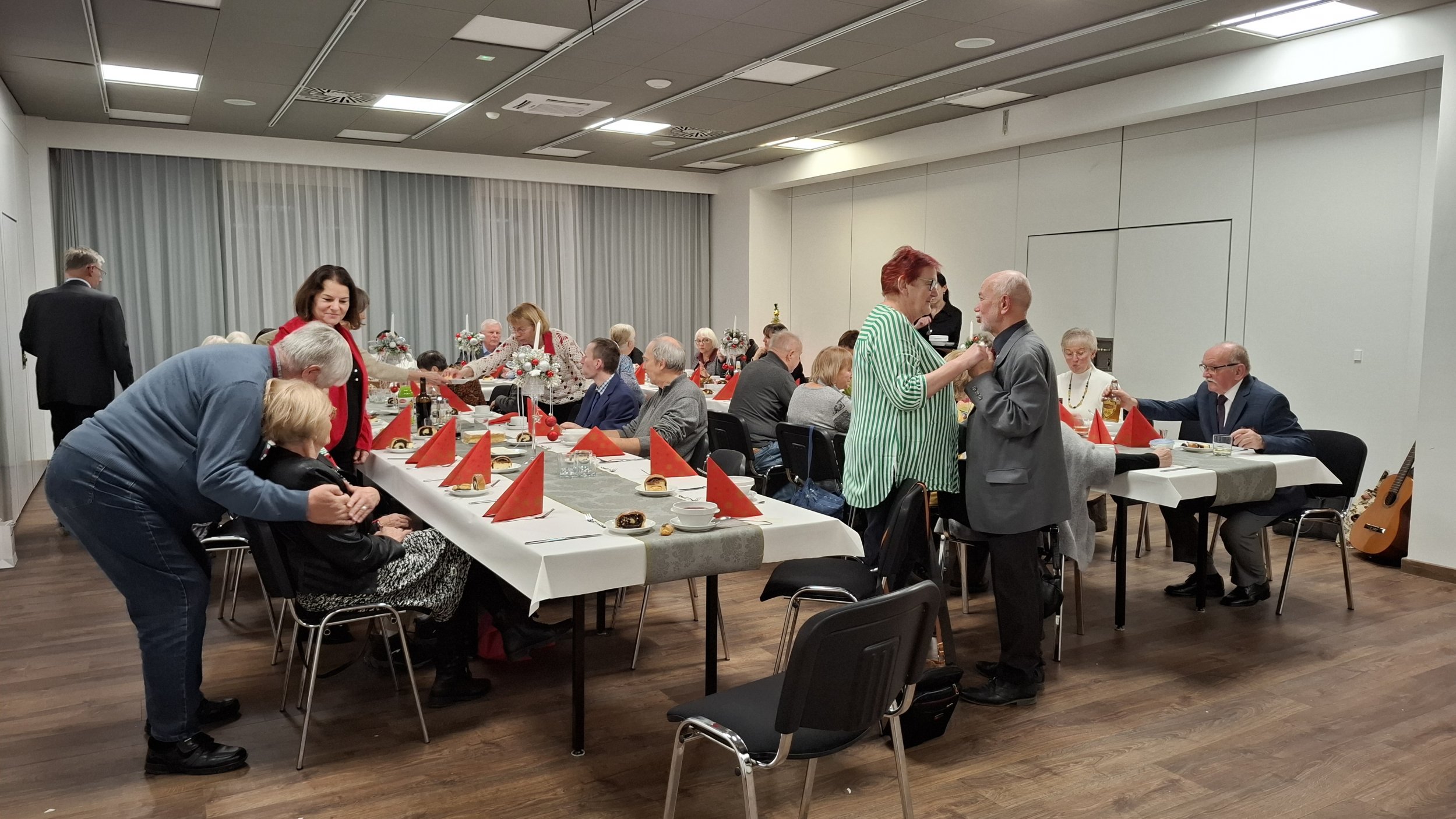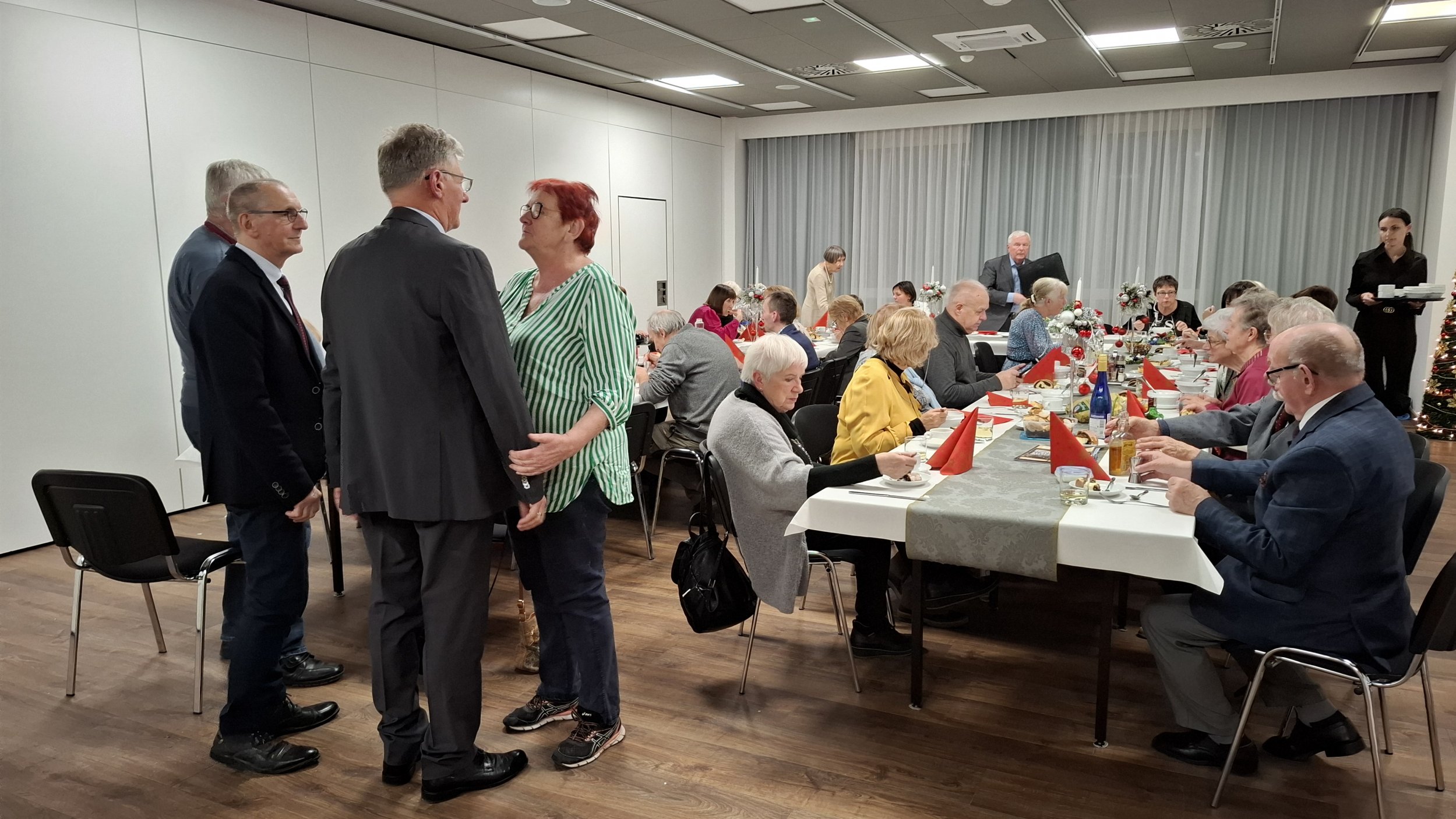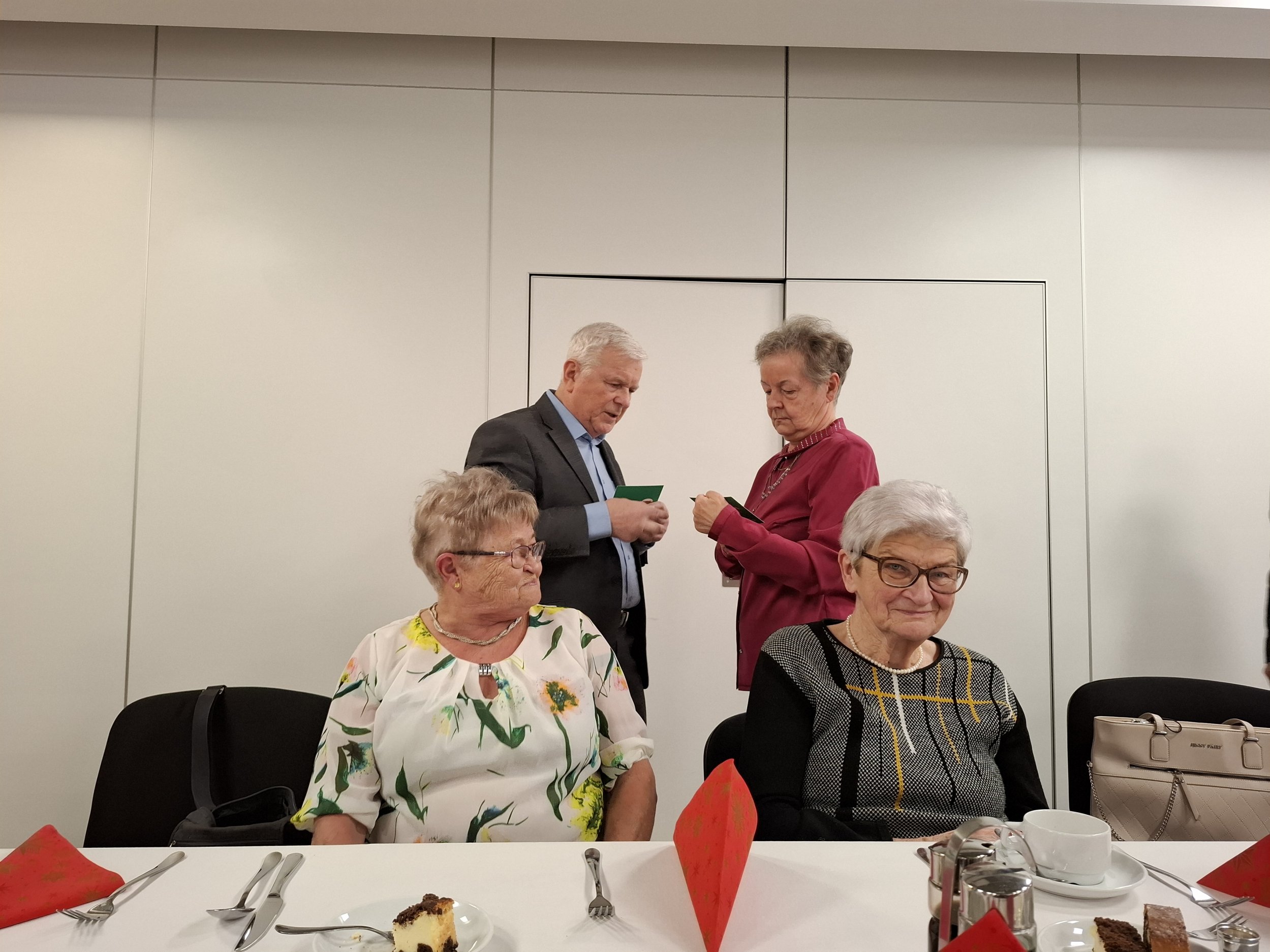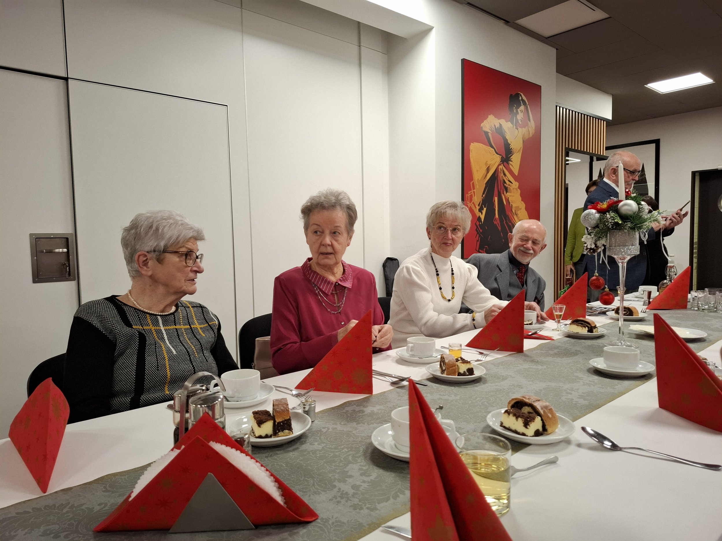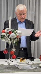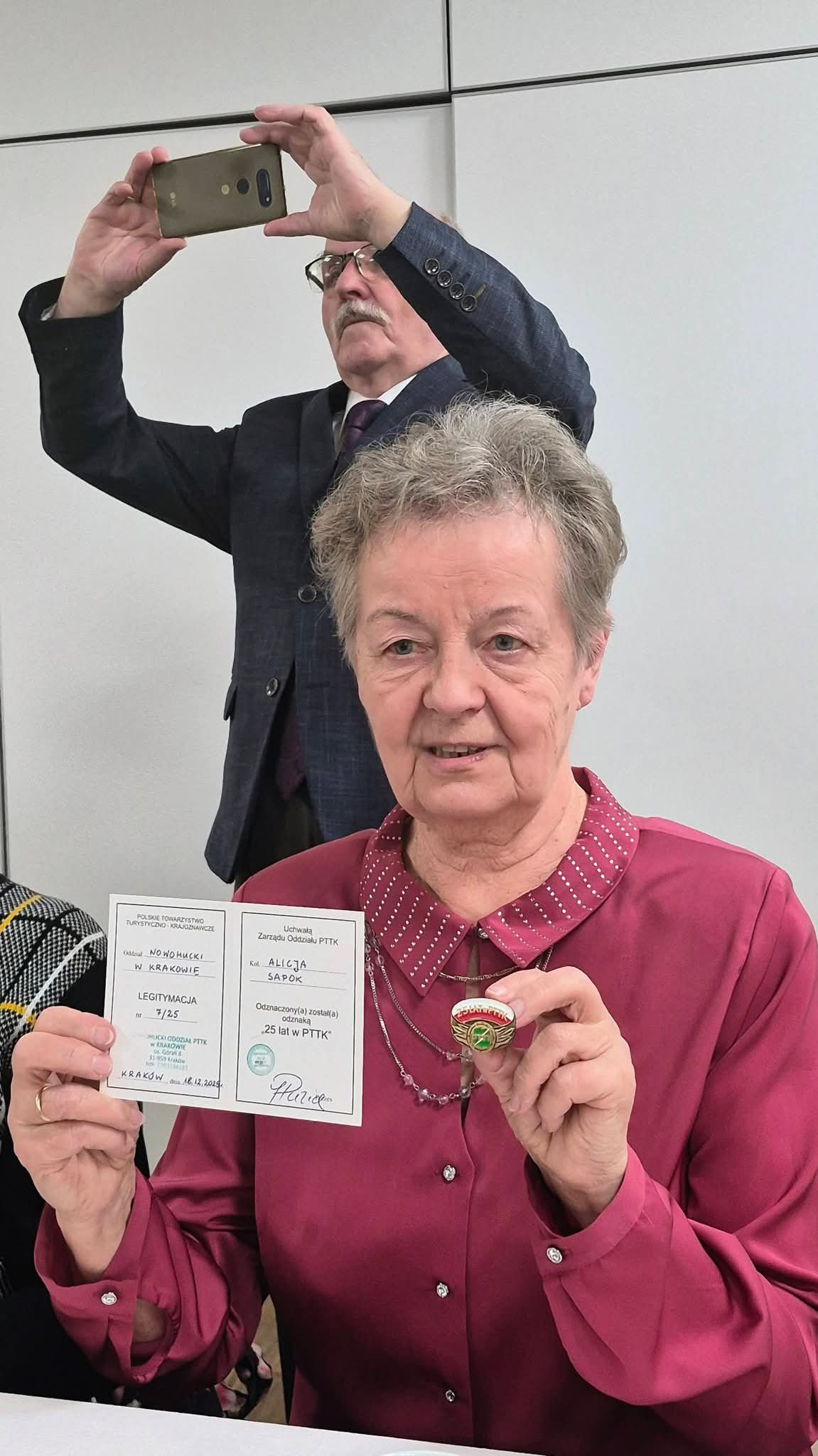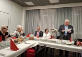 18.12.2025 14:06 (czwartek) Wigilijne podsumowanie roku.Było wystąpienie Prezesa Koła, były życzenia i poczęstunek. Zespół kolędników odśpiewał parę kolend. Sapokowie otrzymali odznaki 25 lecia przynależności do PTTK. Trwały rozmowy i rozmówki i ani się towarzystwo oglądnęło a trzeba kończyć to jakże udane spotkanie.