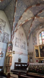 Zwiedzenie zamku w Dębie było w planach od lat. Zawsze się nie udawało i tradycji stało się zadość bo zamek został zamknięty na 3 letni remont. Pozostało podziwianie z różnych miejsc ze spaceru po grobli. Odwiedziliśmy miejscowy cmentarz z niecodzienną neogotycką kaplicą grobową rodziny Jastrzębskich, ostatnich właścicieli zamku w Dębnie. Kaplicę, oraz kościół w Porąbce Uszewskiej projektował jeden z najwybitniejszych polskich architektów przełomu XIX I XX wieku - Jan Sas-Zubrzycki, którego najwybitniejszym dziełem jest kościół św. Józefa przy Rynku Podgórskim. Odwiedziliśmy też cmentarz z I WŚ nr 281. Następnie zwiedziliśmy Dębieński kościół św. Małgorzaty. Świetnym przewodnikiem okazał się proboszcz. Kościół ma dwa niecodzienne zabytki - chrzcielnicę i freski w stylu kubistycznym z roku 1957 autorstwa Józefa Dutkiewicza, krakowskiego artysty i konserwatora zabytków. Kolej na Porąbkę Uszewską. Oprócz obejrzenia kościoła z zewnątrz i przez szybę zamkniętych drzwi obejrzeliśmy grotę nawiązującą do Lourdes. I w końcu trekking na Bocheniec. Brak znakowania szlaków, które jedynie dobrze prezentują się na mapach. Następnie zwiedzanie Bocheńskiej Kopalni i ekspresowy spacer po centrum Bochni.