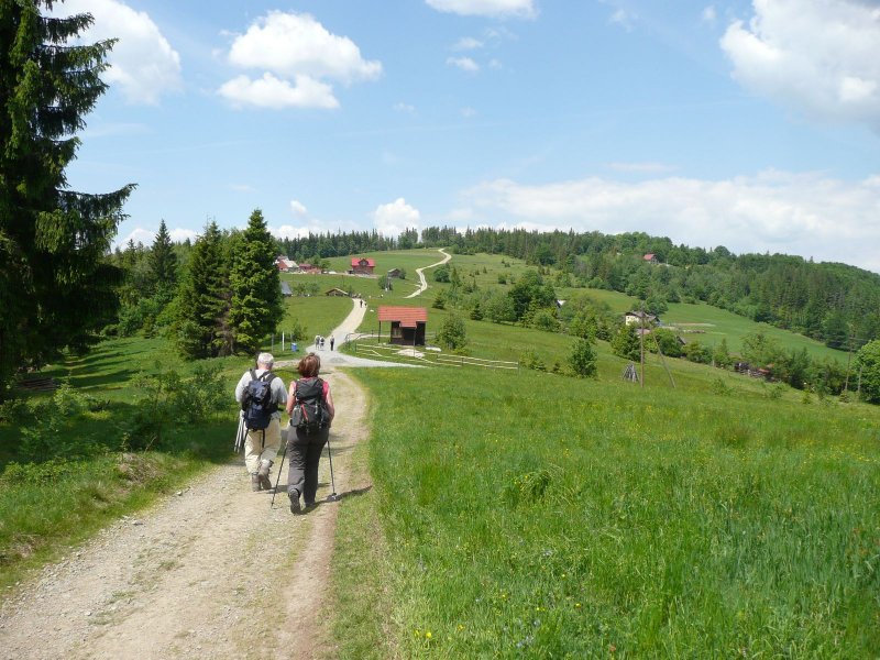 Lub dalej na Przełęcz Beskidek 684 m i zejście czarnym 5,9 km 1 h 35’