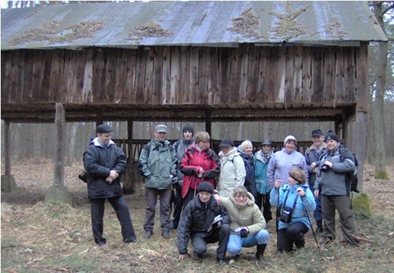 W Polsce i Europie szaleje orkan Emma a my, niepomni zaleceń pogodynek, by nie wychylać bez potrzeby nosa z domu, wyruszamy do puszczy. Startujemy w Gawłówku i od razu kierujemy się na północ. Jasiek jest niezawodny - dookoła płasko a on ciągnie nas na jedyną w okolicy Górę św. Jana z grodziskiem datowanym na XI/XIII w. U stóp tablica informacyjna przedstawiająca legendy związane z tym obiektem. Następnie mijamy miejscowy kościół i dochodzimy do cmentarza parafialnego, gdzie znajduje się kwatera wojenna z I wojny światowej (nr 323/IX okr. Bochnia). Teraz wreszcie wchodzimy do puszczy. Idziemy asfaltową drogą i w napotkanej wiacie - tuż przed zaznaczonym na mapie paśnikiem - popasamy i świętujemy imieniny Kazia. Dalej maszerujemy drogami i bezdrożami, przedzierając się przez błota, pełne wody rowy i stawki Uroczyska Orłowiec, przechodzimy przez most na Drwince i za rzeką wchodzimy w "Las Grobla-Ispina". Chwilę zatrzymujemy się w wiacie z ogromnym pniem otoczonym mrowiskiem z żywymi mrówkami i wreszcie na trasie największa moim zdaniem atrakcja - Ścisły Rezerwat "Lipówka", z niezliczoną ilością powalonych, omszałych i spróchniałych, z pędami nowych roślin wyrastających na korze drzew, wykrotów, i mokradeł. Zaczyna padać, ale Jaś nie odpuszcza i po wyjściu z rezerwatu, na skraju napotkanej polany rozpala ognisko, wyciąga pęta kiełbasy i znowu biesiadujemy, jednocześnie przyjmując do Koła nową członkinię - Rysię. Niestety coraz bardziej leje, więc po skończonym ognisku i dojściu do leśniczówki w Ispinie, decydujemy się na skrócenie trasy i szosą maszerujemy do Chobotu. No i super niespodzianka - nasi szybsi towarzysze, którzy pierwsi dosiedli stojącego na parkingu busa -- porwali go i podjechali po nas - maruderów. Takim sposobem bez czekania wróciliśmy do Krakowa. Wg mojego, nieprzyzwoicie nazywanego przyrządu (kurwimetru) przeszliśmy ok. 17 km.Ala Haponowicz