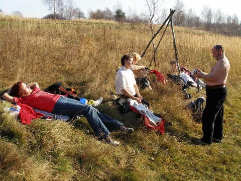 Robert Szynal:W ostatni weekend listopada aura przygotowała dla nas fantastyczną pogodę. Wycieczka w okolice Doliny Racławki obfitowała w atrakcje. Było coś dla ducha - wizyta w pięknym klasztorze karmelitów w Czernej. Było coś dla ciała - piękne wcale nie listopadowe słońce zachęcało do opalania. Było też coś dla zmysłów - źródełko miłości. Ciekawe, komu spełnią się marzenia pomyślane po zaczerpnięciu wody ze źródełka? Rozleniwienie kąpielą słoneczną minęło przy drzewie wymarzonym do wspinaczki. Pięknie prezentowała się nasza grupa malowniczo rozłożona na gałęziach. Pozdrawiam Robert Szynal
